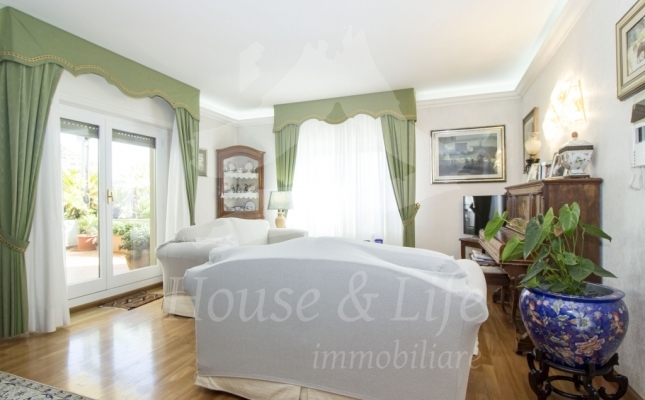 L'immobile, signorile ed elegante, si presenta al contempo molto funzionale grazie agli ottimi accorgimenti nel sfruttare al meglio tutti gli spazi, come la realizzazione di divani su muratura e ampie librerie a parete.