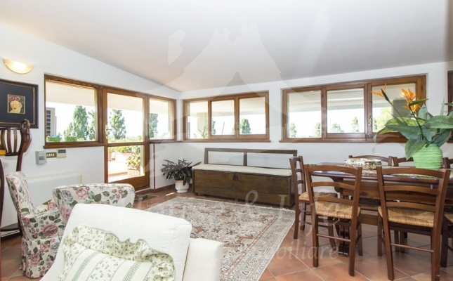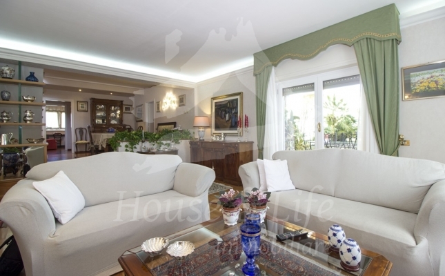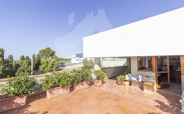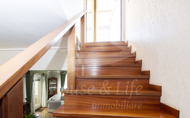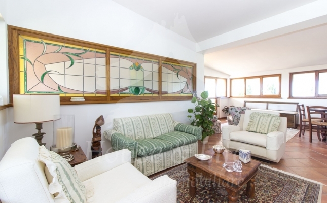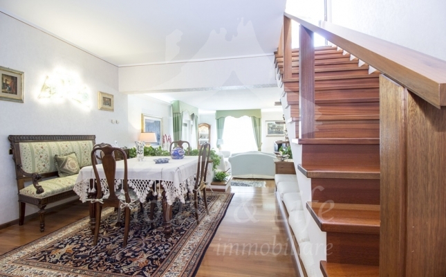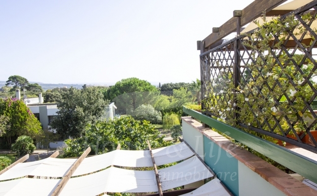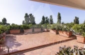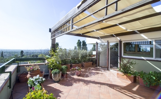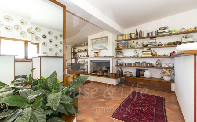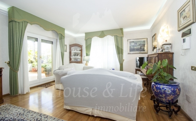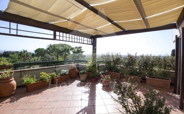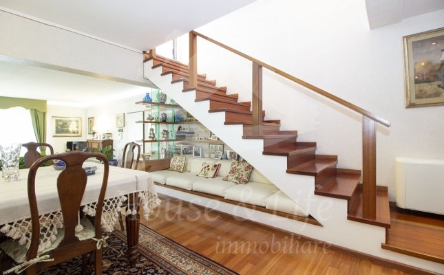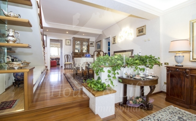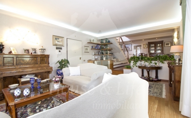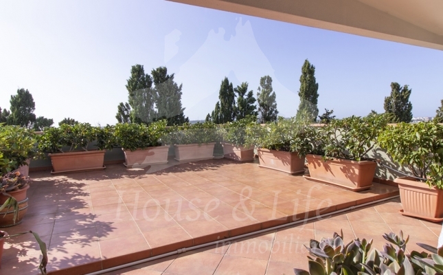 L'appartamento, che si presenta particolarmente luminoso, si sviluppa su una superficie di circa 225 mq; si compone al primo livello di una ampia zona living costituita da un luminoso salone ed un soggiorno/pranzo con affaccio su una curata terrazza vivibile. Un disimpegno conduce alla zona notte che conta 4 camere da letto, una cucina abitabile con affaccio su un terrazzino, tre bagni completi di cui uno con vasca, uno con idromassaggio e uno con doccia. Una scala in legno ben studiata e posizionata nel salone conduce al livello superiore dove è presente un grandissimo salone accessoriato da camino che accoglie una comoda zona cottura ben attrezzata e un angolo bar, il tutto circondato da due ampie terrazze vivibili nelle quali sono state posizionate tende solari a garantire l'utilizzo degli spazi esterni in totale relax e privacy.
